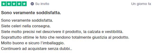 Se ancora hai dei dubbi sull’affidabilità di De Caro Calzature puoi controllare le nostre recensioni su Trustpilot, il più grande sito indipendente di recensioni. De Caro Calzature ha più di 1200 recensioni e una media di 4,9 stelle su 5.